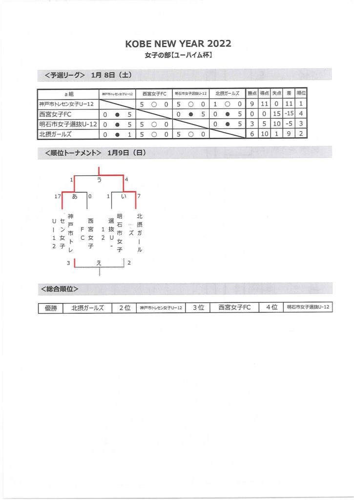 神戸市トレセン女子U12との対戦は、毎年拮抗したいい試合ですね~!!