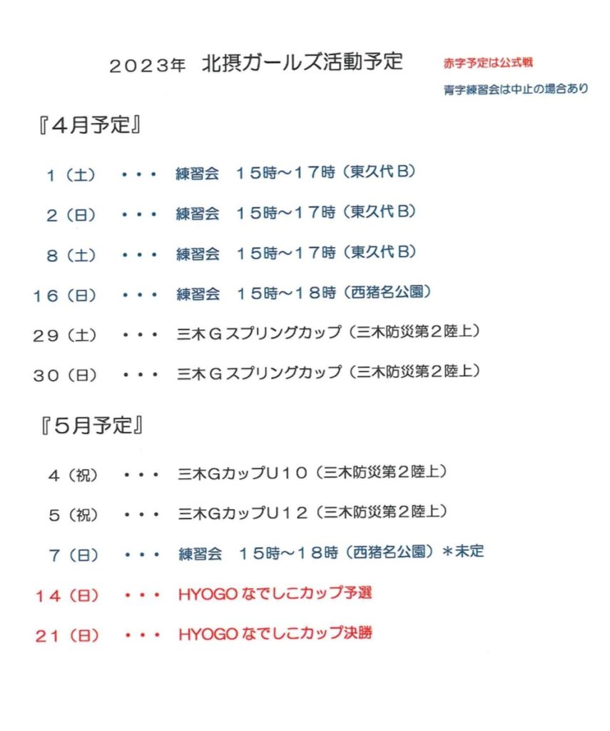 4月~の予定をUPします