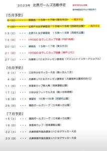 7月までの予定(更新分)をUPします。5月7日(日)北摂FA女子練習会が雨天中止になりましたので5月13日(土)に振替えて実施します。