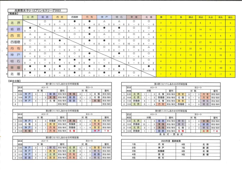 2023年度兵庫県都市協会選抜U12女子プリンセスリーグの最終節に2年~6年の8名で参加しました